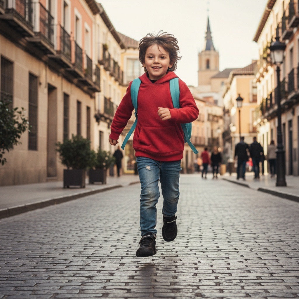 Los pies de los niños están en pleno crecimiento. Un zapato respetuoso (con horma ancha, suela fina y flexible, sin refuerzos y sin drop) permite que los músculos, huesos y articulaciones se desarrollen de forma natural, como si fueran descalzos, favoreciendo el equilibrio, la coordinación y la postura.